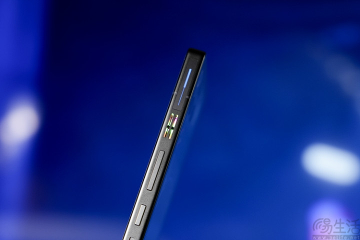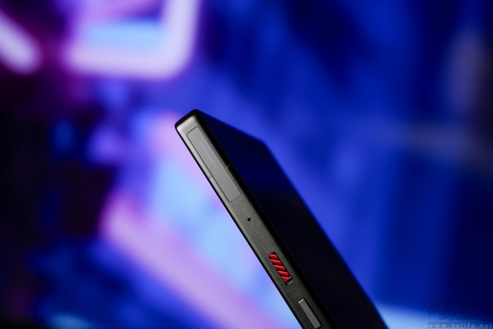 当然,作为一款“硬核游戏手机”,红魔11 PRO+在中框部分的“游戏元素”不只有风冷散热口。在机身另一侧,可以看到比前代更宽、触控感应面积更大的两个电容式肩键。而且新的肩键感应区域比中框其他部分要略微“内凹”,因此也更容易盲操。